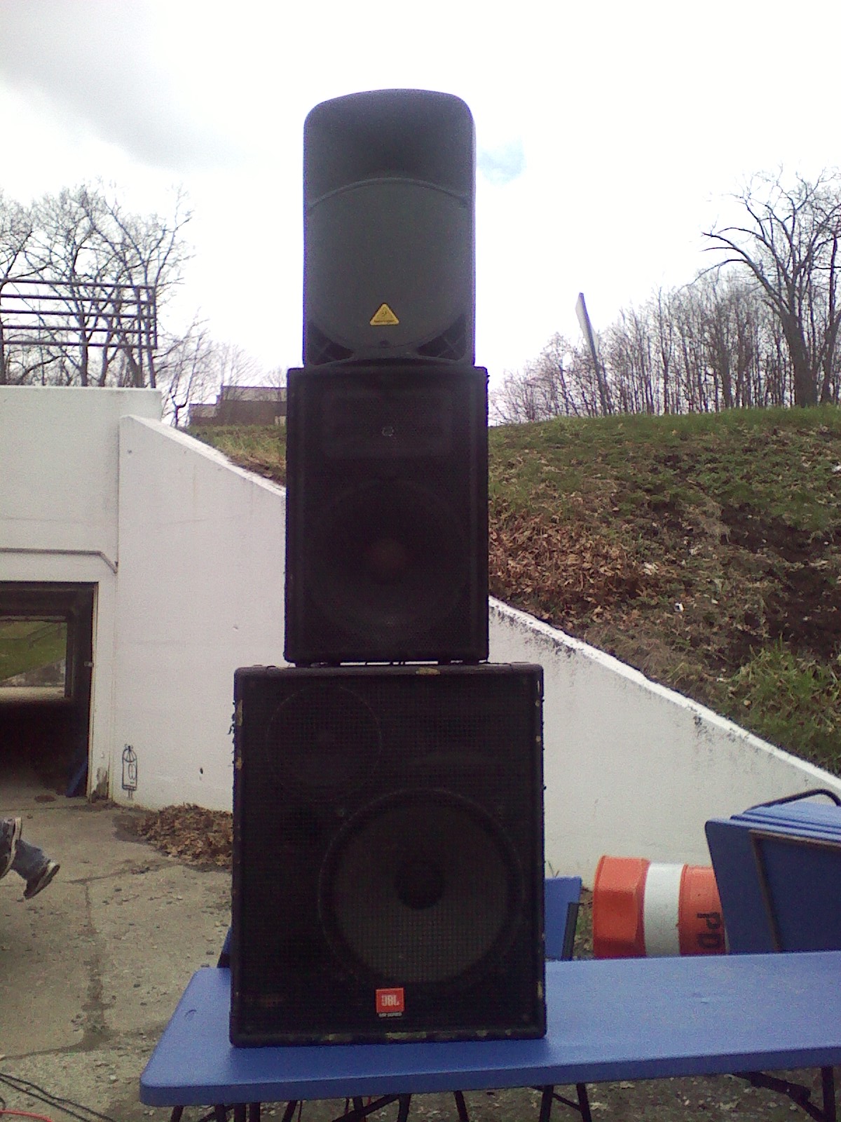 Our rather impressive stack of speakers